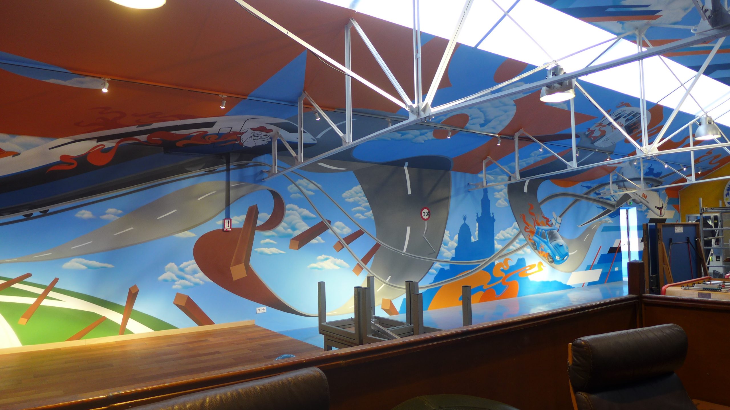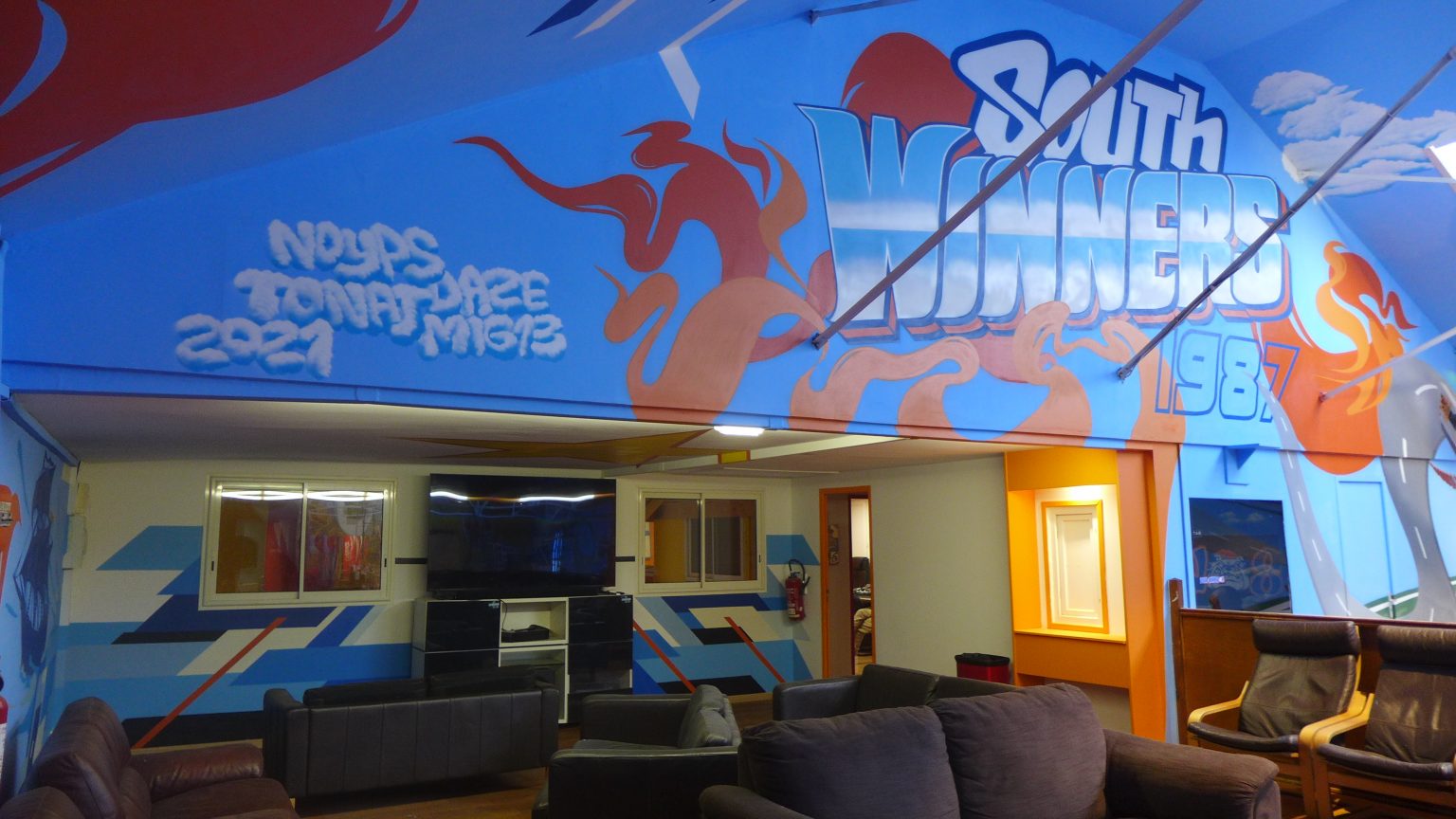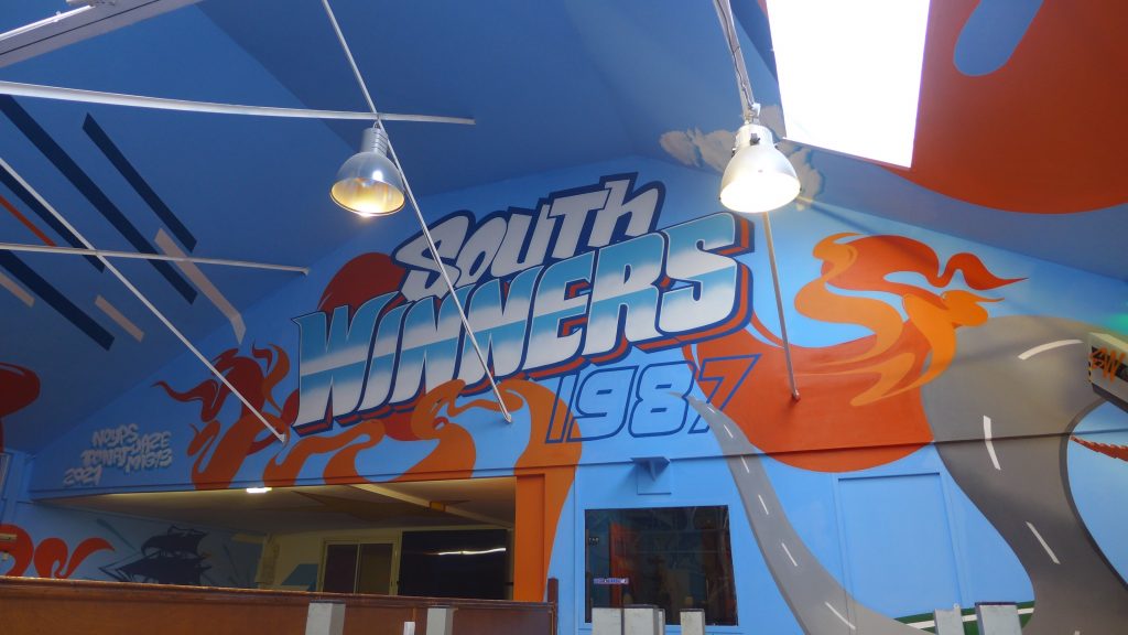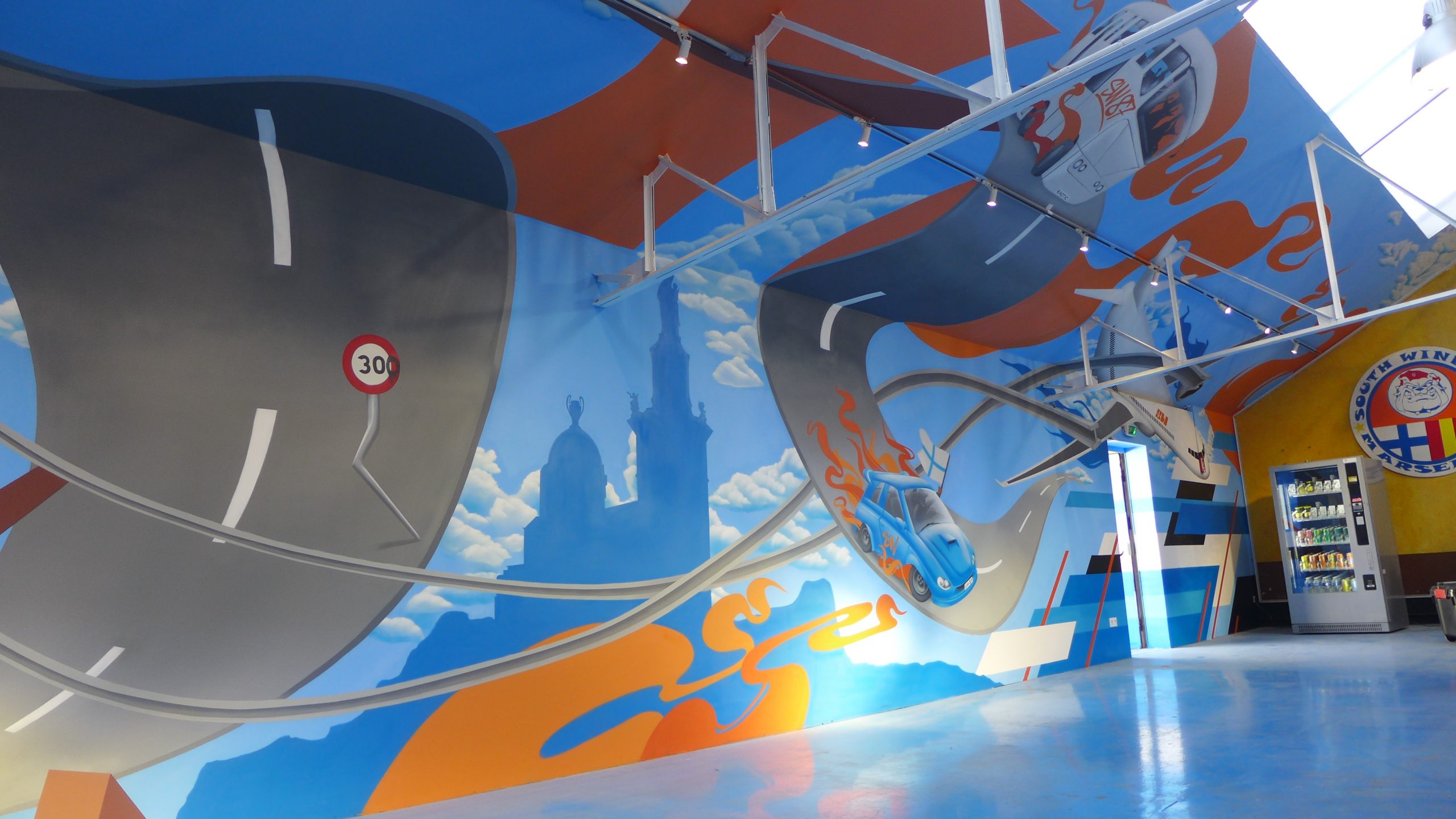 Cet ensemble de fresque a été réalisé dans les quartiers généraux du groupe de supporters du virage sud de l’Olympique de Marseille situés à la Belle de Mai. Pour la célébration des 35 ans du club, les South Winners ont fait appel à Artlambik pour concevoir et réaliser ces peintures décoratives sur 450m2. Les symboles de la ville côtoient ceux de l’OM et le logo emblématique du club trône en place centrale dans ce grand local qui peut accueillir des centaines de supporters les jours de match. Les South Winners sont engagés dans de nombreuses causes proches des valeurs du sport aux côtés d’associations locales.